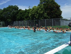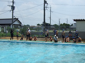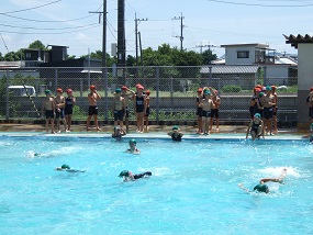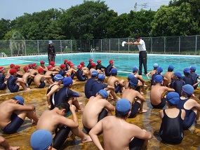 本日、玉名市教育員会と岱明B&Gより3名のゲストティーチャーをお招きして、着衣泳を行いました。