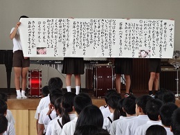 最後に、童話発表会の各学年の代表になった子どもたちに表彰し、大野小学校代表者の発表をしました。