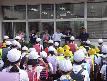 本日の下校集会には、玉名警察署や地域の交通指導員、玉名市役所から来ていただき安全指導を行いました。