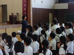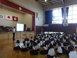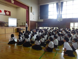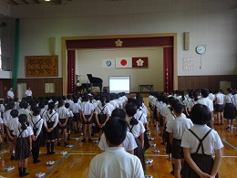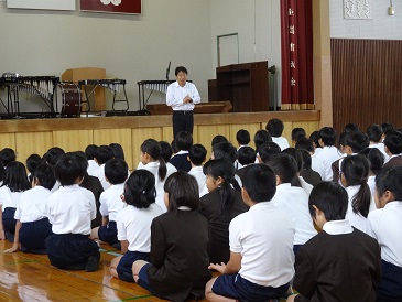 子どもたちの報告の後に、校長先生から「みんなの目が向いているのでとてもすばらしい」といわれました。また、人権集会についての説明もありました。