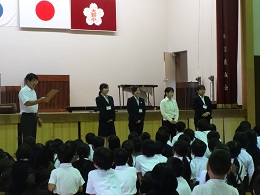 本日、前期が終了しました。終業式では、一言も話さずに静かに入場し、静かに待つ子どもたちの姿がありました。