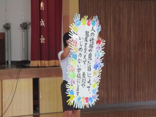 最後に、各クラスの人権宣言の発表を行いました。道徳や学活で人権教育を行い、クラスでしっかりと話し合った内容が発表されました。