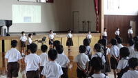 今日の児童集会は、環境委員会の子供たちが環境ISOに向けての取組を呼びかけてくれました。