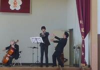 4人においでいただいて、「シンコペーテッドクロック」「G線上のアリアのの演奏や子どもの楽器体験、先生の飛び入り参加での演奏等がありました。子供たちも楽しそうに演奏を聴いていました。