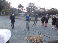 松明づくりにPTAの役員さん方に来ていただき作り方を指導していただきました。