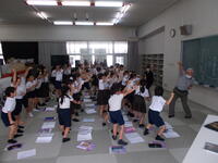 玉名市社会福祉協議会の主催で、3年ぶりに本校で「校区ふれあいサロン」が行われ、校区に居住の一人暮らしの高齢者の方や民生委員・児童委員の方々と4年生が交流しました。