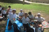 みんな前の日から動物たちとのふれ合いをとても楽しみにしており、ミルク牧場に着くと、大はしゃぎでうさぎやモルモットなどを撫でていました。また、ヤギのレースや乳搾り体験があったり、アスレチックで遊んだりと、とても楽しい一日になったようです。
