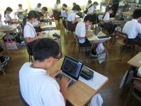 授業中のタブレットを活用しての活動が効率的にできるためにも、タイピングの技術の向上が大切になってきます。学校では、毎月1回タイピングの時間を設けていますが、子供たちはちょっとした隙間時間で練習に取り組んだりしており、高学年の児童は、大人顔負けのスピードの子もいます。