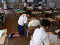 今回は、1・2年生の学級に入り、子供たちの学習支援や休み時間のサポートなどに取り組んでくれました。とくに、昼休みには、一緒に遊んでくれたので、子供たちもとても喜び、くっついて楽しそうに遊んでいました。