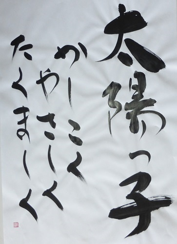 「太陽のように温かく希望をもって強く輝く、かしこく、やさしく、たくましい 子どもであってほしい。また、そういう人に育ってほしい。」という願いを託した校訓です。