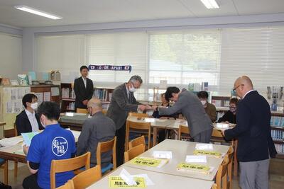 今年度から国版の学校運営協議会に移行し、八代市教育委員会から委嘱状が届きました。本校校長から委嘱状の交付があり、第1回目ということで自己紹介をしていただきました。