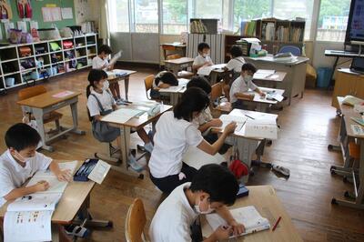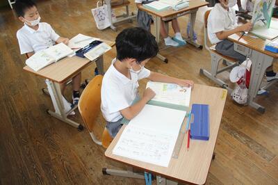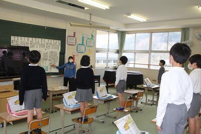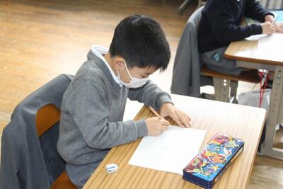 特別の教科道徳では、「わんぱくまつじろう」という教材を使って、正直な心について学習しました。この教材は、江戸時代後期に活躍した儒学者の松崎慊堂(こうどう)(上益城郡木倉村:現御船町生まれ)の幼少期のエピソードをまとめたものです。この学習を通して、うそをついたりごまかしたりしないで素直にのびのびと生活しようとすることを学んだ、東陽っ子2年生です。