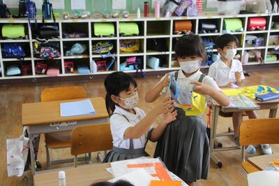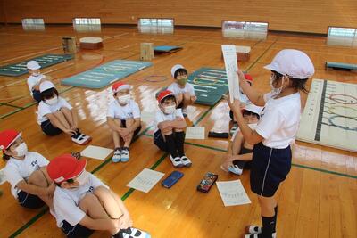 1年生を招いておもちゃパーティーを行いました。おもちゃだけでなく、折り紙などのプレゼントやそれを入れるバッグを用意し、1年生を楽しませてくれました。さすが2年生のおにいさん、おねえさんです。