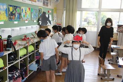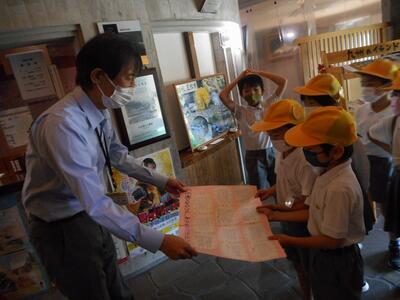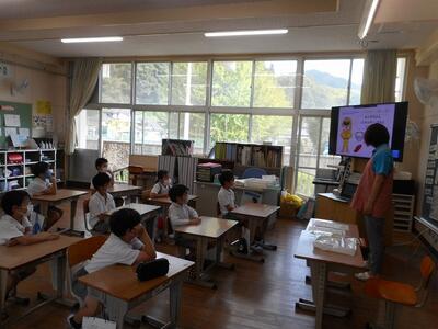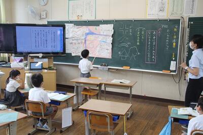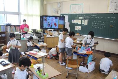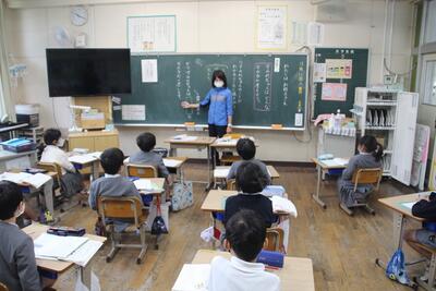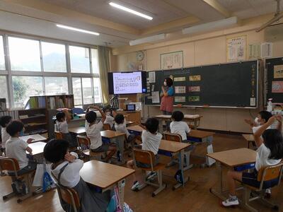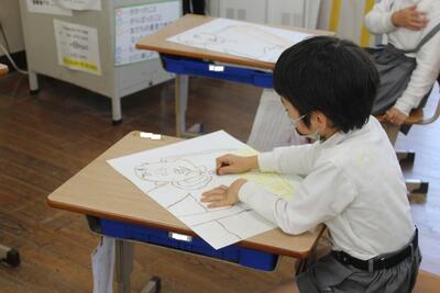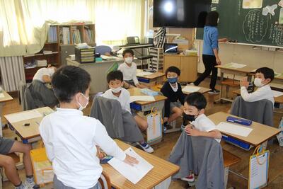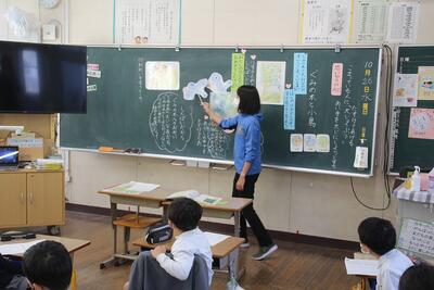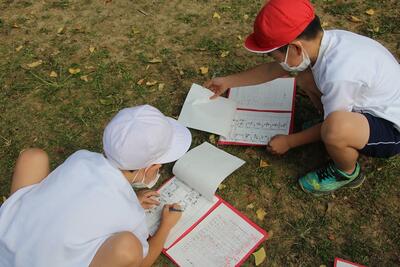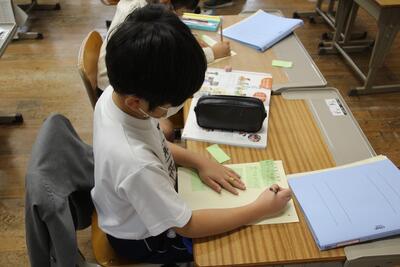 生活科では、2学期になって初めての町たんけんに行きました。今回は、若宮神社・駐在所・石匠館・橋本勘五郎の墓などを見学しました。上記の画像は、学校に帰ってきて振り返りをしている場面です。東陽の宝をたくさん見つけてきた2年生でした。