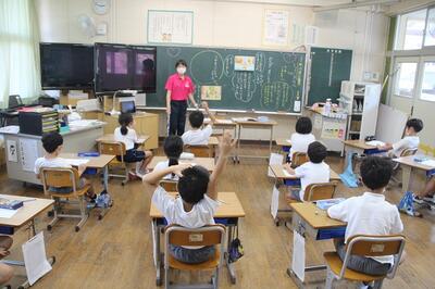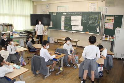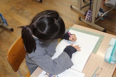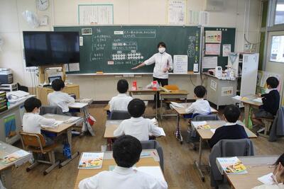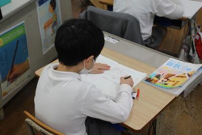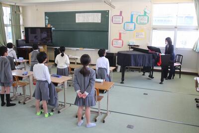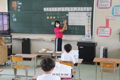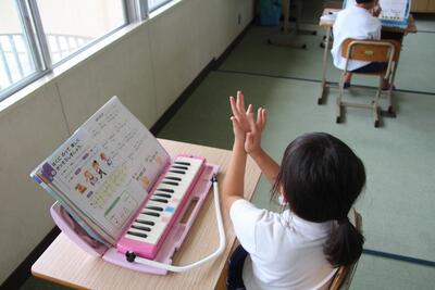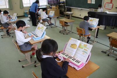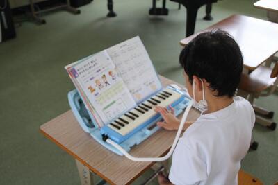 音楽科では、「山のポルカ」という曲を使って、けんばんハーモニカでの合奏の学習をしています。2拍子にあわせて、指使いを意識しながらけんばんを押さえていました。1の指・3の指など、押さえるけんばんを確認しながら演奏していた東陽っ子2年生です。