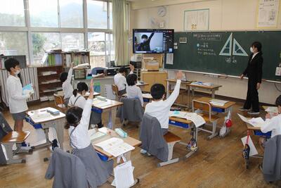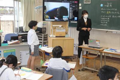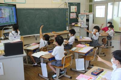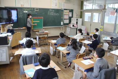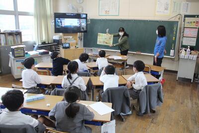 生活科の町たんけんのまとめとして、氷川町立宮原小学校の2年生とオンラインでの交流会を行いました。お互いの校区のよさについて説明したりクイズにしたりして分かりやすく発表できました。目的意識や相手意識がはっきりしているので、子どもたちの意欲が高まりました。宮原小学校の皆さん、ありがとうございました。