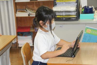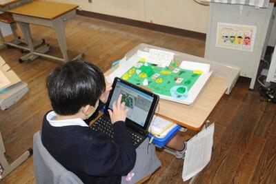 算数科ではかけ算の学習に入りました。この日は3だんについて特徴を考え、答えをタブレットに書き込んでいきました。答えを確認し、これから答えをスラスラ言えるように学習していきます。