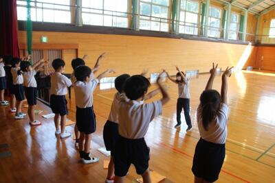 2年生は、1年生のお手本になってどんどん運動を行いました。お兄さんお姉さんのなった東陽っ子2年生です。