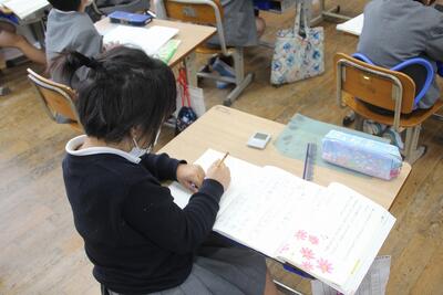 国語科では、物語「私はおねえさん」を使って、自分と比べた感想について学習しています。その人が言ったこと・したこと・気持ちなどから、登場人物と自分を比べる活動を行いました。本文からその人に関係のある文を選び、まとめていきました。一生懸命読んで書いている姿が輝いて見えました。