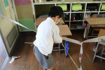 算数科では、100㎝をこえる長さの学習に入りました。この日は、両手を広げた長さを紙テープにとり、100㎝をこえる長さの測り方を考えていました。これから新しい長さの単位やその量感について学習していきます。