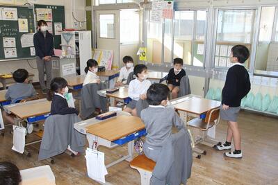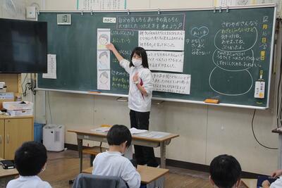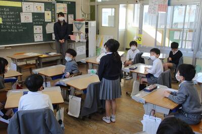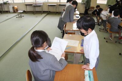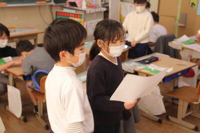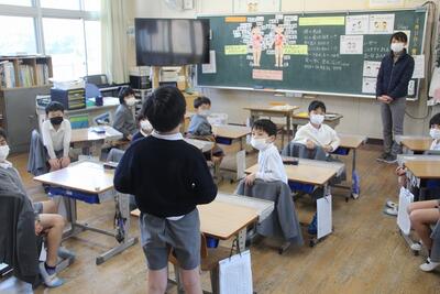 この日は、1年生が自分で調べた動物の赤ちゃんの発表を聞き、1年生に感想などを伝える学習でした。2年生も昨年この学習を経験しているので、「なるほど」と思えるような内容を伝えていました。2年生の成長を実感する場面でした。
