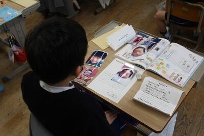 生活科では、「自分はっけん」という学習に入りました。自分のこれまでの成長を知るために、写真や家族へのインタビューなどを通して調べる活動をしています。家族の愛情がたっぷり詰まった写真が輝いて見えました。