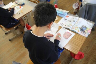 本校では2月を性教育月間とし、「性について学ぶことを通して、人間の尊厳に気づき、自他の命を大切にし、自ら考え判断できる力を育てる」ことを目標にしています。この日は、「体っていいな」という学習をしました。体の中にはいろいろな器官があること、女性や男性の体のことなどについて学習しました。男女の体の違いを知り、思いやりを持って接する態度を育てています。
