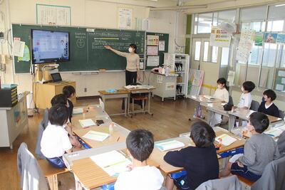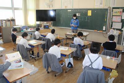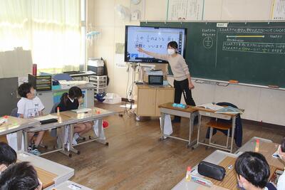 国語科では、教科書の付録になっている物語「ジオジオのかんむり」を使って、感想を伝え合う学習を行いました。若いときのジオジオと年齢を重ねたジオジオの違いについて感想を発表しました。親切な心や自分の生き方について考えさせられる物語です。後者のジオジオの気持ちに共感できるのは私だけではないと思います。