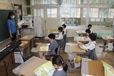 音楽科では、みんなで合わせて楽しもうという学習をしています。この日は、これまで学習してきた歌やリズムに乗って体を動かすことを行いました。今月の歌やジャンケン列車などの活動の後、「はるがきた」をみんなで合わせて歌いました。この季節にぴったりな2年生の歌声が校内に響きました。