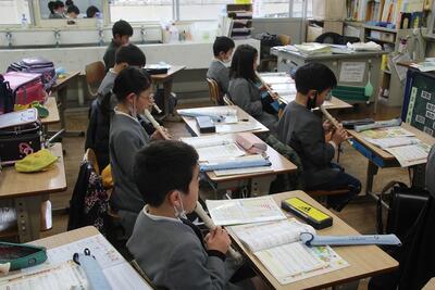 2月2日にお伝えした続報です。音楽科では、リコーダーで「パフ」の演奏を行っています。1ヶ月経過しました。3年生の演奏が格段に上達していました。楽譜を見ないで演奏する人もいて、指の使い方を練習したことがよく分かりました。リコーダーの音の重なりが響き合っていました。