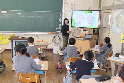 社会科では、「市のうつりかわり」について学習しています。この日は、交通の変化について調べました。八代市も他の自治体と同様に、国道や県道・高速道路・新幹線・港など、大きく変化しています。未来の八代市は子どもたちに引き継がれます。