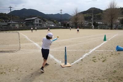 体育科では、ベースボール型ゲーム「ティーボール」を学習しました。子どもたちはWBC大会を見ている人が多いので、ベースボール型の運動に関心が高いようです。攻撃ではボールを遠くに飛ばしたり、守備ではボールをとりネットに向かって投げたりしました。ボールを遠くに飛ばして、ヌートバー選手のパフォーマンスをしている人がいました。