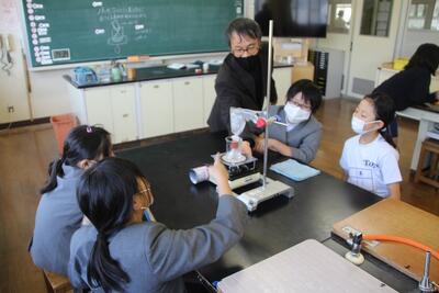 理科では物のあたたまり方を学習しています。この日は空気のあたたまり方について実験を行いました。空気は目に見えないので線香の煙で空気の動きを見ました。はじめは携帯用カイロを使ってあたためてみましたが、熱量が足りなかったので、実験用コンロに切り替えて実験を続けました。ものによってあたたまり方に違いがあることが分かりました。