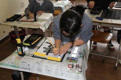 書写(国語科)では、画の方向に気をつけて「麦」を書きました。筆のはらからほ先への筆使いに気をつけて、左払いの形を整えていました。毛筆2年目の4年生なので、筆の使い方が上手になってきました。