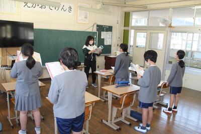 音楽科では、鑑賞の学習を行いました。グリーグ作曲「ペールギュント」第1組曲「山の魔王の宮殿にて」を聴き、旋律の繰り返しにきをつけながら、速さ・強さ・音色などの変化を感じ取る学習です。主な旋律が18回繰り返されている曲で、子どもたちは「正」の字を書きながら何回繰り返されているのか確かめていました。
