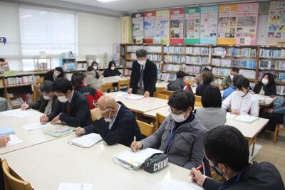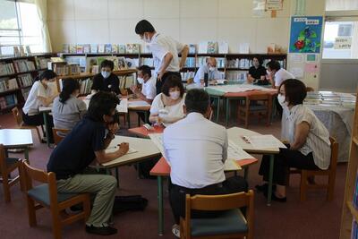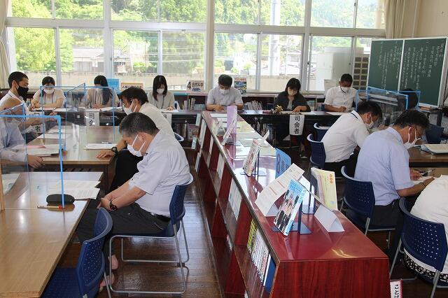 東陽中学校区人権レポート研究会を本校図書室で行いました。東陽小・東陽中の先生方が全員集まって、学校代表の実践レポートを報告していただき、参加者で学び合いました。