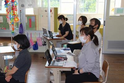 子どもたちが主体的に取り組む家庭学習にするために職員で知恵を出し合いました。また、その土台となる授業が大切になってくるので、授業研究の動画を視聴し、今後の授業づくりを考えました。東陽っ子のみなさん、先生たちもしっかり勉強しています。