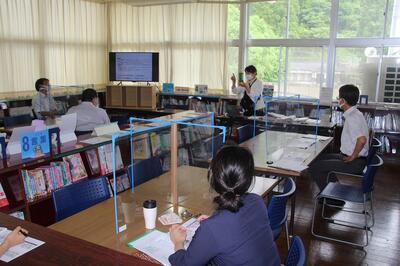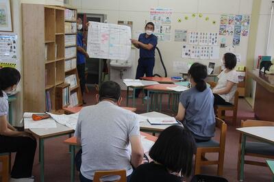 6月8日の校内研修では、研究の仮説と家庭学習への取組などについて話し合いました。今年度の研究で特に力を入れる取組の一つに、家庭学習があります。