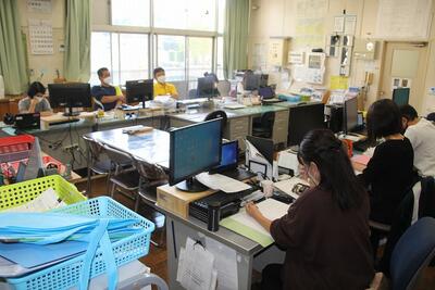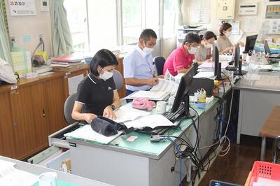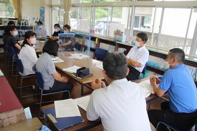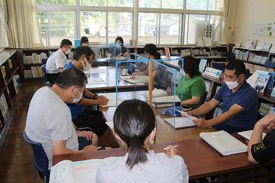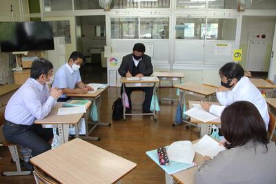 校内研修では、9月7日(水)に予定している3・4年の算数科の研究授業の事前研究会でした。授業者から単元構想案の説明を受け、全職員で意見を出し合いました。複式学級なので、担任が直接指導できない場合があり、子どもたちの主体的な学びをいかにして進めるかを検討しました。複式学級の利点を追求する研究授業になりそうです。