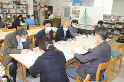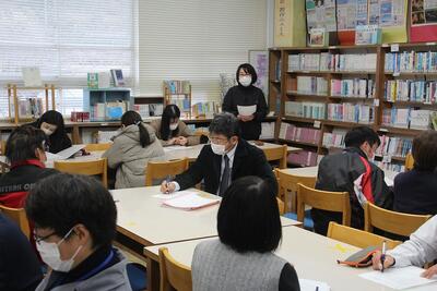 校内研修では、来年度以降の複式学級のための年間計画づくりを行いました。まず、全体会を開き、研究主任から来年度以降の入学予定者の推移や複式学級の編制、年間指導計画の必要性についての説明がありました。次に、総合的な学習の時間や道徳教育・特別活動の3つの部会に分かれて、年間指導計画の検討と作成の見通しについて話し合いました。学年末の業務に入る前に年間計画について検討しておくことは、とても有意義でした。
