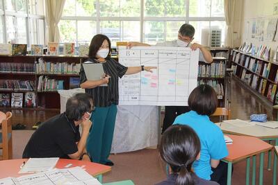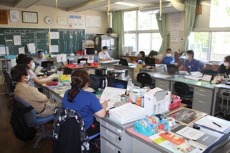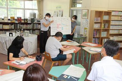 6月8日の校内研修では、研究の仮説と家庭学習への取組などについて話し合いました。今年度の研究で特に力を入れる取組の一つに、家庭学習があります。