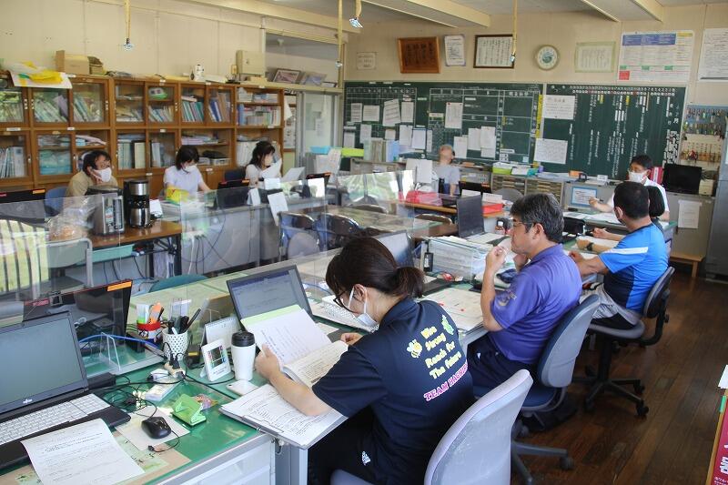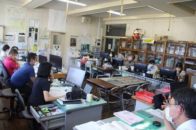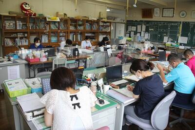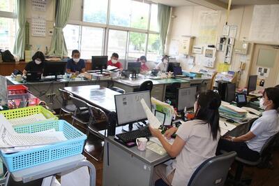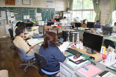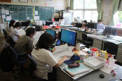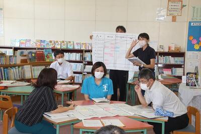 校内研修では、9月7日(水)に予定している3・4年の算数科の研究授業の事前研究会でした。授業者から単元構想案の説明を受け、全職員で意見を出し合いました。複式学級なので、担任が直接指導できない場合があり、子どもたちの主体的な学びをいかにして進めるかを検討しました。複式学級の利点を追求する研究授業になりそうです。