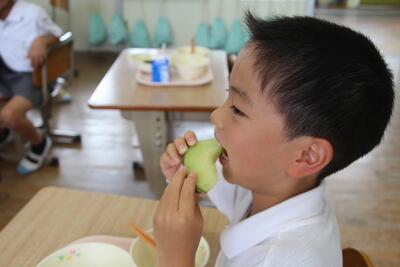 今回の食育の日の食材は、熊本県産の柿とさつまいもでした。柿は「太秋」という甘みの強い種類で、さつまいもは「さつまいもご飯」として食べました。どちらも甘みがあり子どもたちはおいしそうに食べていました。下記に資料を掲載しています。ご一読ください。