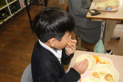 かねあげを食べる1年生