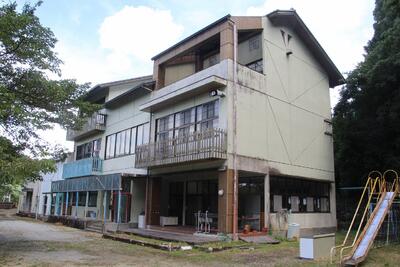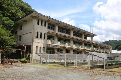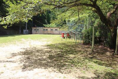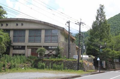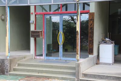 平成4年に落成した校舎は現在も立派に残っていました。玄関横に掲げられている「内ノ木場分校」の看板は 閉校して10年の月日を感じさせない素敵なものでした。この旧校舎や体育館、運動場などは、自然体験のイベントなどに活用されているそうです。だから、草刈りや補修工事などを地域の方が行っているということでした。きれいに整備されています。