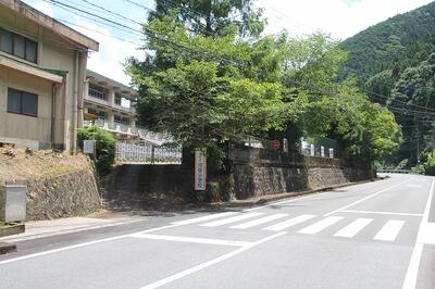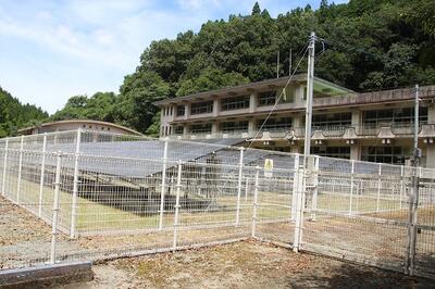 本校は、平成25年に河俣小学校と内ノ木場分校・種山小学校が統合して誕生しました。そこで、今回は旧河俣小学校を紹介します。県道25号線を五木方面に向かっていくと、左側に見えてきます。昭和61年に落成した3階建ての校舎は今も残っています。体育館やプールも閉校前まで使われていたそのままの形であります。運動場に道東電機が設置した太陽光パネルが並んでいます。正門近くに閉校記念碑が輝いて立っています。卒業生や保護者、地域の方、以前勤務した先生方などに喜んでいただけると幸いです。