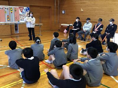 東陽中学校ではすべての生徒が自転車通学になります。そのため、小学校卒業を前に6年生を対象とした自転車教室を行いました。交通安全協会のK様より自転車の正しい乗り方やルールなどについて説明してもらいました。次に、自転車乗車の実技でした。VRを使った危険予測シミュレータでの乗車と、実物を使った屋外での乗車の2パターンを行いました。左右や後方の確認やブレーキのかけ方など実際に行いました。学生服やカッパを着たり、中学校用の通学かばんを背負ったりして乗車しました。中学校生活に対応した活動になりました。交通安全協会や東陽町交通指導員など関係者の皆さん、ありがとうございました。