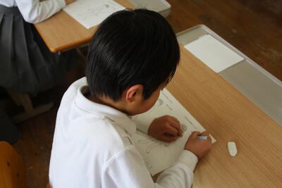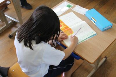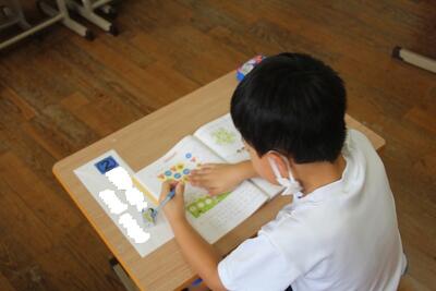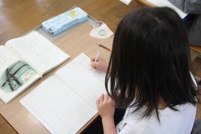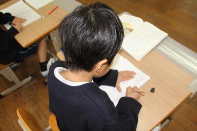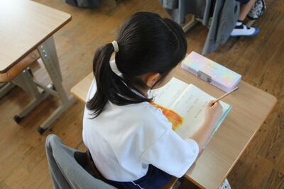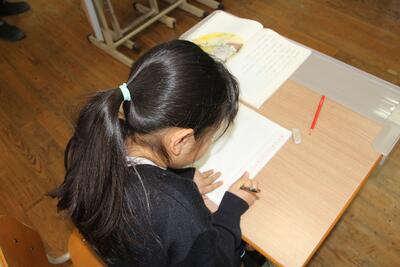 国語科では、詩について学習しています。教科書にある2つの詩(かたつむりのゆめ・はちみつのゆめ)の場面の様子を想像したり、言葉の響きやリズムを楽しんだりして学習しています。この日は、2つの詩から自分で1つを選び学習シートに視写して、場面の様子や言葉の響きなどを学習しました。
