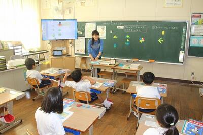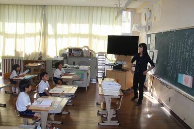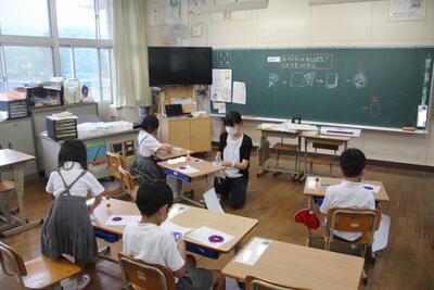 算数科では、「なんばんめ」という学習を行いました。前後・左右・上下などの方位や位置を表すことばに着目して順序数を理解したり、表したりする学習です。この日は、自分たちで並んで右から◯番目・左から◯番目などを実際に行いました。運動会の練習にも活用できそうです。