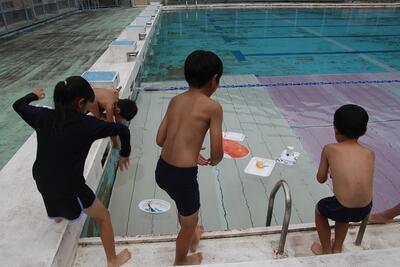 生活科では、「なつとなかよし」という学習を行いました。プールにトレイで作った船を浮かべたり、マヨネーズ容器に水を入れて噴射させたりして水遊びを楽しみました。みんなと関わったり、遊びのルールを自分たちで考えたりしながら楽しく活動しました。
